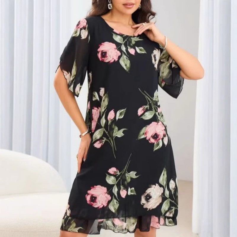 🌺Szyfonowa sukienka z okrągłym dekoltem w kwiaty